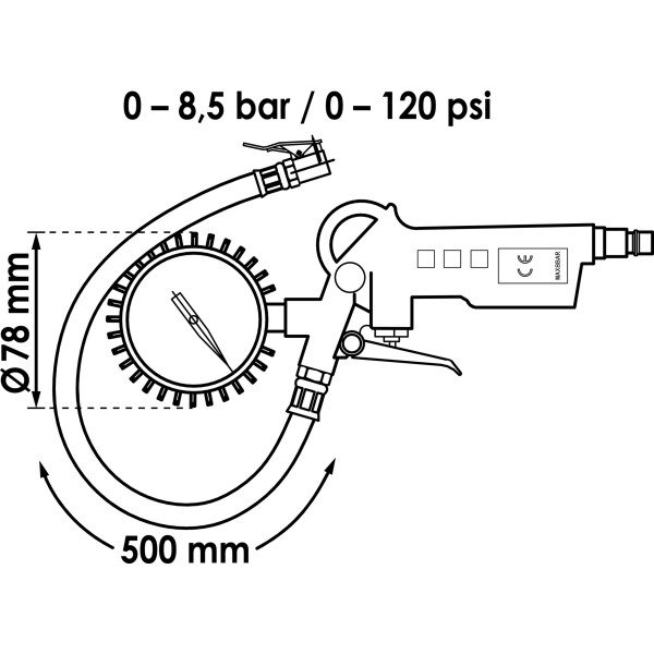 - Ευανάγνωστο μανόμετρο ακριβείας με οθόνη σε bar και PSI.