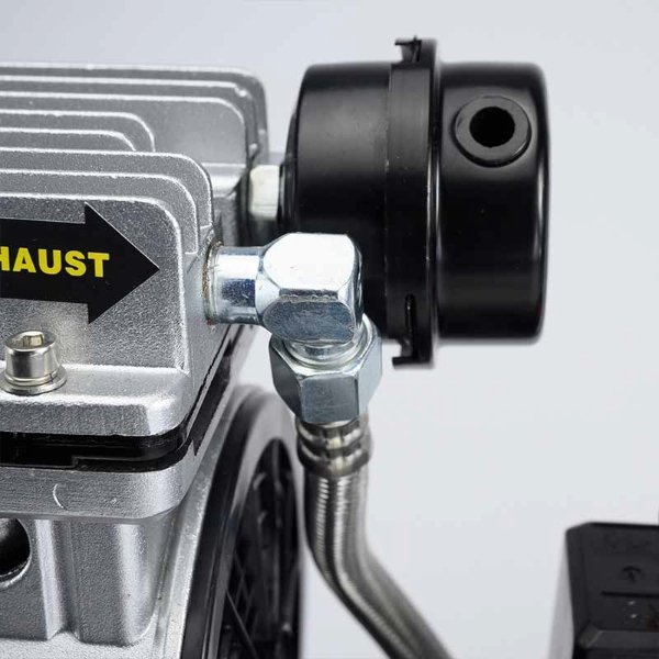 Αεροσυμπιεστής χαμηλού θορύβου με κινητήρα χωρίς λάδι. Με δύο μανόμετρα για ένδειξη πίεσης αέρα καζανιού και εξόδου. Το ελαφρύ καζάνι του σε συνδυασμό με την εργονομική λαβή και το σετ τροχών που φέρει, το καθιστούν εύκολο μεταφορά.
