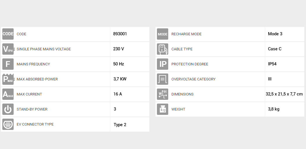 • Ισχύς 3,7 kW (μονοφασικό 16A 230V)