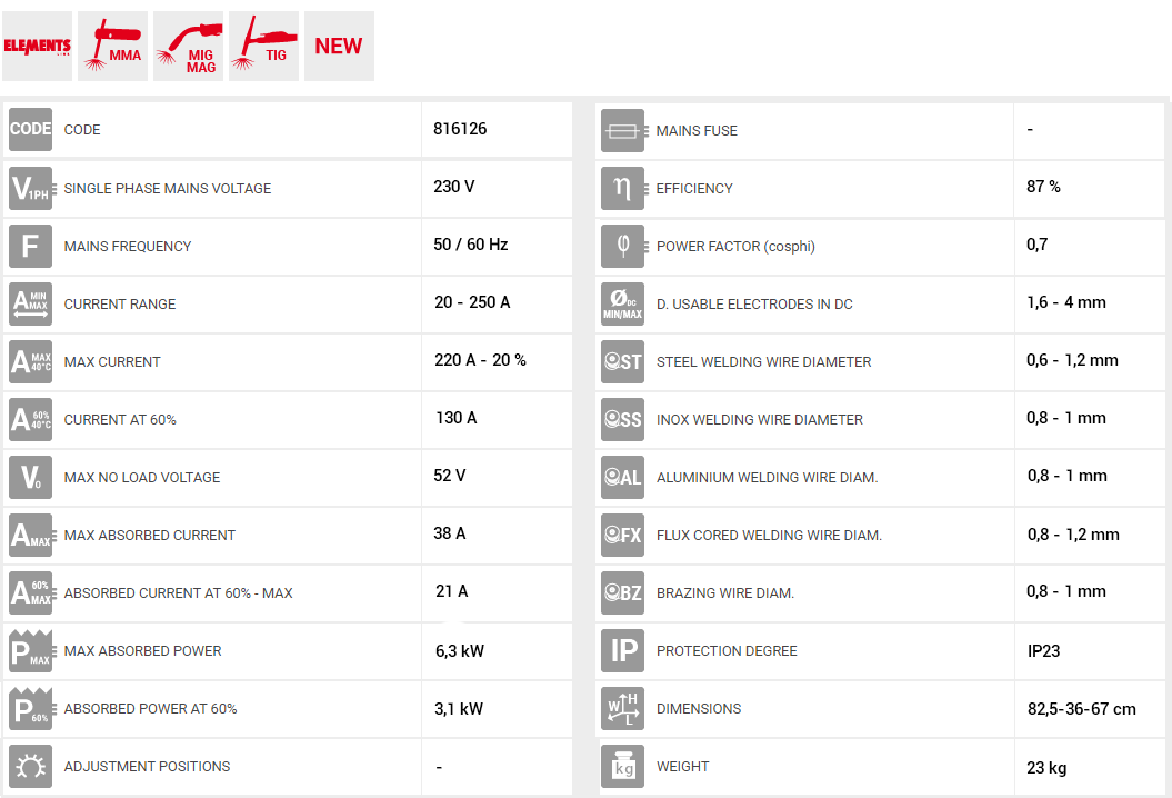 • Πλήρης με τσιμπίδα MIG-MAG και γείωση.