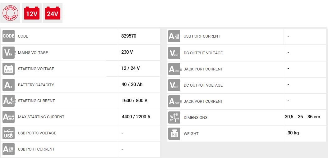Εκκινητής μπαταρίας TELWIN START PLUS 4824 κατάλληλος για εκκίνηση 12 ή 24V μηχανών, αυτοκίνητα, αγροτικά οχήματα, τρακτέρ, σκάφη αναψυχής, μικρά φορτηγά και φορτηγά.  Όταν συνδέεται µε την πρίζα του αναπτήρα διατηρεί την τάση σε όλα τα κυκλώματα κατά την διάρκεια αλλαγής της μπαταρίας. Πηγή ενέργειας 12V για χρήση έκτακτης ανάγκης. Διαθέτει διακόπτη ασφαλείας κατά την εκκίνηση χωρίς να προκαλείται καταστροφή στα ηλεκτρονικά του οχήματος. Παρέχει την δυνατότητα χρήσης μεγάλου αριθμού εκκινήσεων πριν την επαναφόρτιση του. Το TELWIN START PLUS 4824 μπορεί να επαναφορτιστεί από τον φορτιστή μπαταριών TELWIN T-CHARGE 12 που περιλαμβάνεται στην συσκευασία (για την προστασία της μπαταρίας του φορτίζουμε για 12 ώρες πριν από τη χρήση, φόρτιση ξανά μετά από κάθε χρήση και κάθε 3 μήνες σε κάθε περίπτωση). Εξοπλισμένος από καλώδια με κροκοδειλάκια και φορτιστή ρεύματος 230V AC 12V DC.